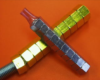 ナットを順序良くパクトのフィルムで包んでみました。フィルムは無公害のポリスチレンです。ミシン目がありませんがナットは簡単に下から外れます。これがポリスチレンの特徴でしょう。ボルトにネジを絡めて外すと無駄な力も要りません。いくつか取ってフィルムが邪魔になればそこから破けます。1本の基準数量が10個ですので数える時も、とても便利です。現場に余分に持っていかなくて良く、持ちかえる時もポケットの中でバラバラにはなりません。在庫も場所を取りませんのでスペースも十分に使用できます。